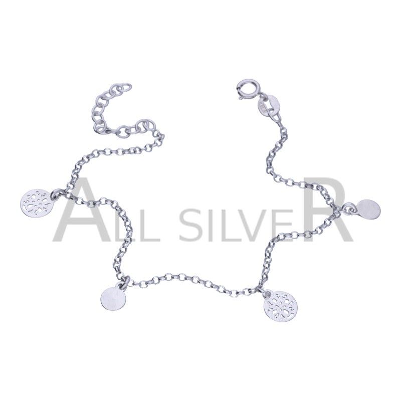 BRACELET SILVER 925 RHODIUM PLATED , LEN 17.5CM + 3CM EXTENSION, CIRCLES OPENWORK AND FULL SUSPENDEDED ON THE CHAIN TYPE ROLLO .