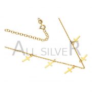 CHOKER NECKLACE ON ROLLO CHAIN, 925 STERLING SILVER PLATED WITH 24 CARAT GOLD, LENGTH 36CM + 4CM EXTENSION, THREE SUSPENDED TIRES.