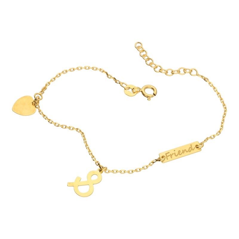 BRACELET SILVER 925 GOLDPLATED 24 carat gold, LENGTH 17CM 3CM + EXTENSION, SMOOTH HEART & badge INSCRIPTION FRIEND.