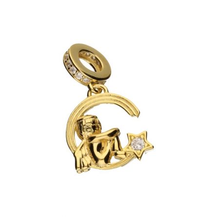 BEAD PENDANT FOR MODULAR BRACELETS WITH A DIAMETER OF 3MM, STERLING SILVER 925 GOLD PLATED WITH 24 CARAT GOLD, WHITE ZIRCONIA, MOON, STAR, ANGEL.