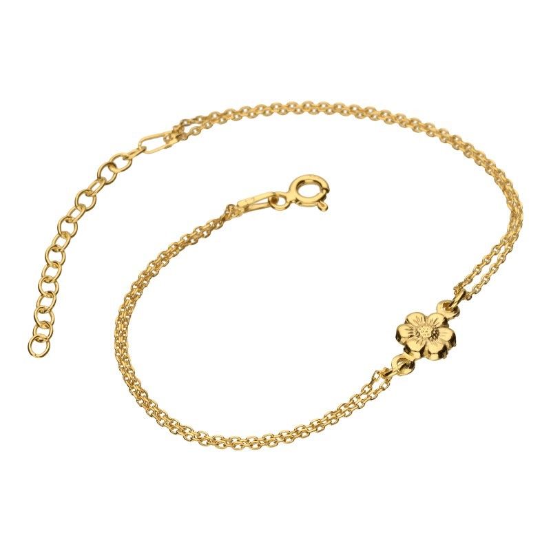 BRACELET ON DOUBLE CHAIN, 925 STERLING SILVER PLATED WITH 24 CARAT GOLD, DELICATE FLOWER DIMENSIONS 7mm X 7mm.