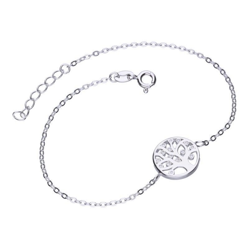 OPENWORK BRACELET, STERLING SILVER 925 RHODIUM, LENGTH 18cm + 2cm EXTENSION, WHITE ZIRCONIA, ROUND ELEMENT WITH THE MOTIF OF A LIFE TREE, 13mm DIAMETER.
