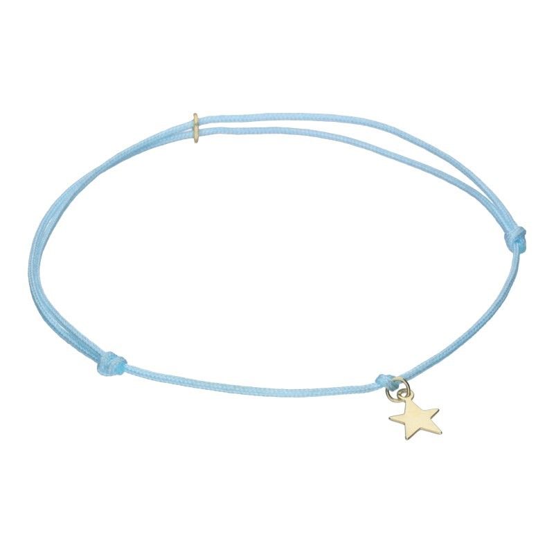 BRACELET ON JEWELERY CORD IN MINT COLOR, GOLD ELEMENTS SAMPLE 333, ADJUSTABLE LENGTH, PLATE PLUS STAR WITH DIMENSIONS 6mm X 8mm.