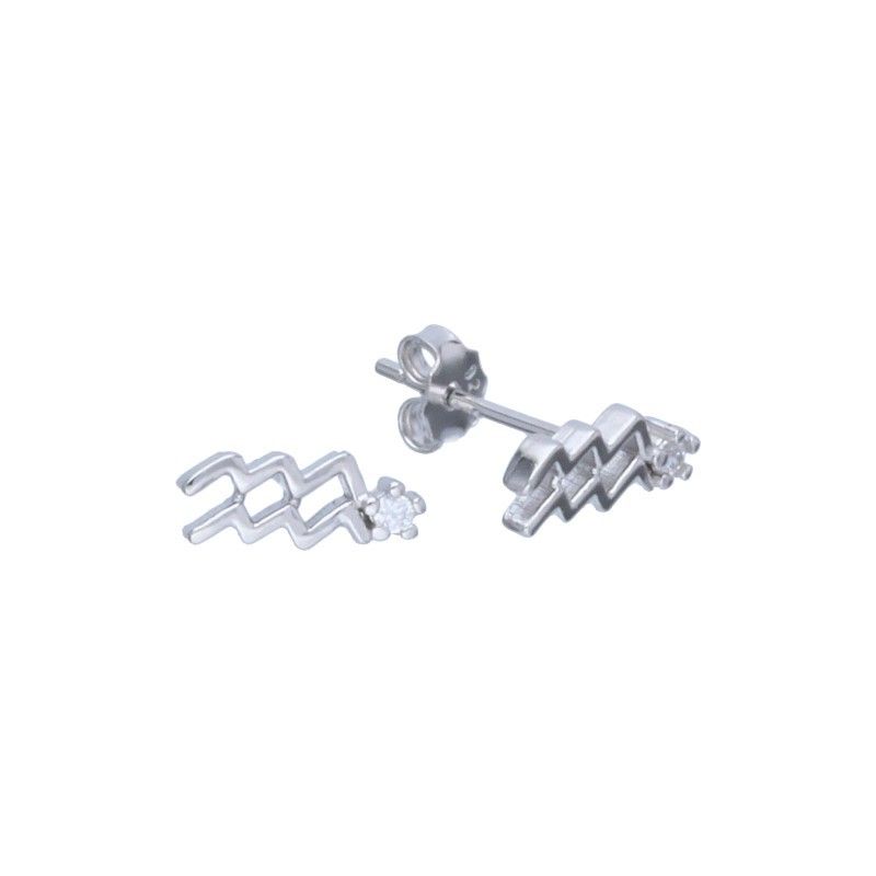 STUD EARRINGS, STERLING SILVER 925 RHODIUM, WHITE ZIRCONIA, AQUIDIUM ZODIAC SIGN, DIMENSIONS 4mm X 9mm.