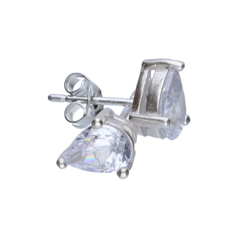STUD EARRINGS, 925 STERLING STERLING SILVER, WHITE ZIRCONIA, DIMENSIONS 7mm X 5mm, TEAR, DROP, ALMOND.
