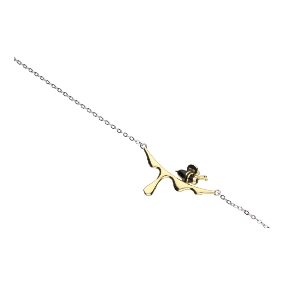 NECKLACE ON A NECKER-TYPE CHAIN, COMBINATION OF 925 SILVER, RHODIUM-PLATED WITH 24 CARAT GOLD PLATED, LENGTH 42cm + 3cm EXTENSION, BLACK STONE, BEE, BEE, HONEY, MOTIVE DIMENSIONS 30mm X 18mm.