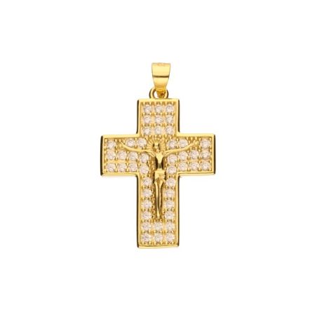 CROSS WITH THE IMAGE OF LORD JESUS, 925 SILVER, GOLD PLATED WITH 24 CARAT GOLD, WHITE ZIRCONIA, PENDANT DIMENSIONS WITHOUT TIE 20mm X 26mm.