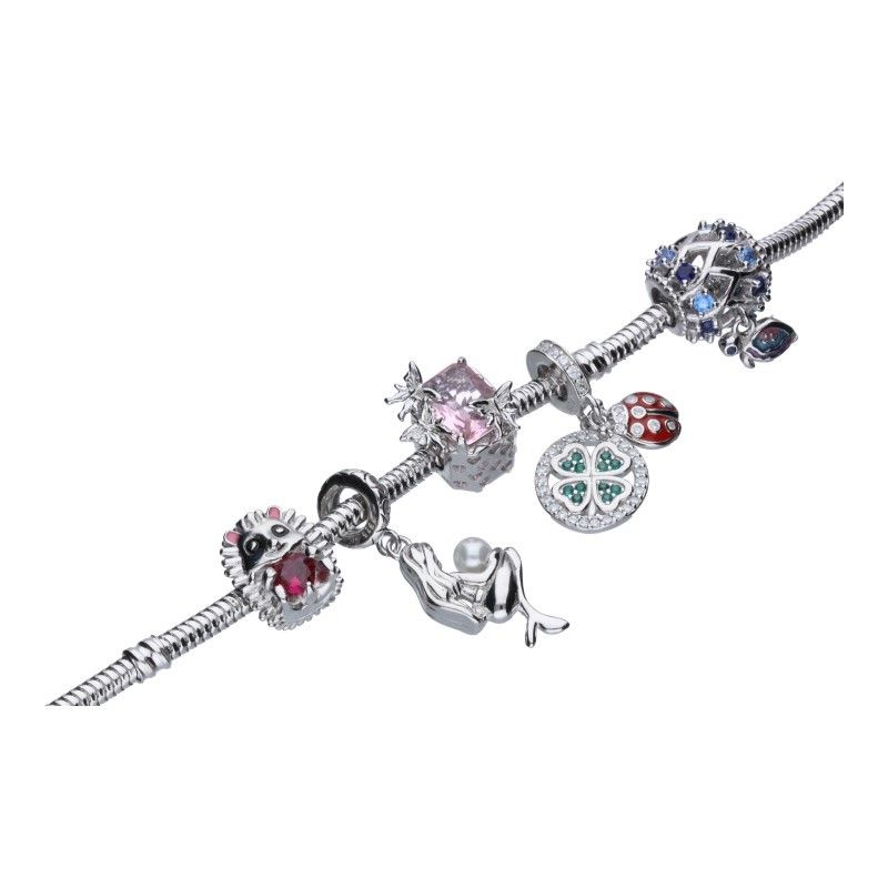 Bead openwork pendant matching modular bracelets with a diameter of max 3mm, silver of 925 Rida, white rhinestones, rose winds, compass with the inscription "Lets Go" with a diameter of 12mm.