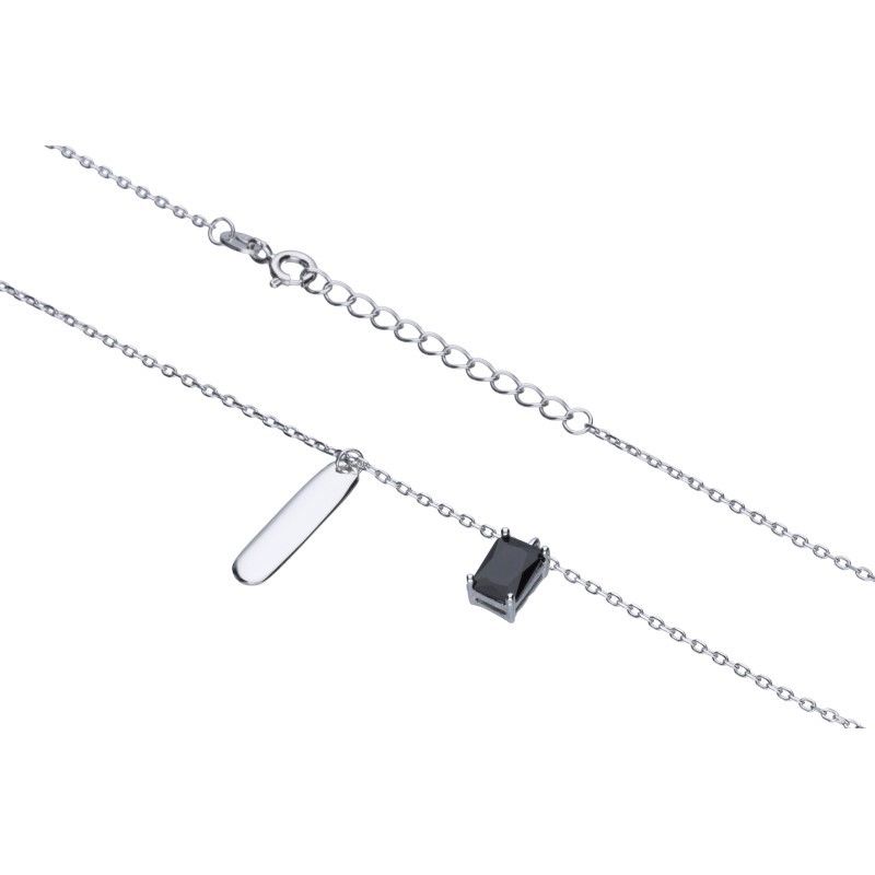 Necklace on an ankier weave chain, 925 rhodium silver, length 42cm+3cm extension, faceted black zirconia with dimensions 5mm x 7mm, smooth plate measuring 4mm x 18mm.