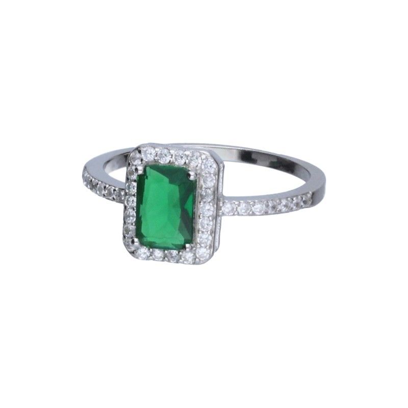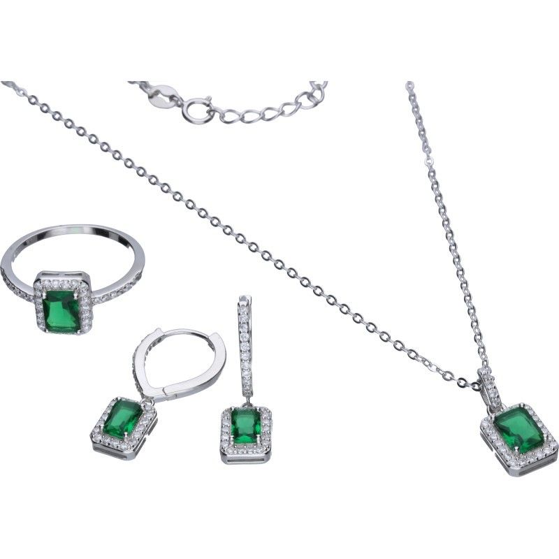 A set of a marquis, consisting of a necklace, stick earrings plus a ring in size 14, 925 rhodium silver, emerald and white rhinestones, necklace length 42cm+3cm extension, decorative motif of 8mm x 10mm ring.
