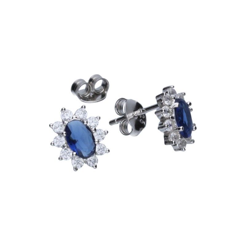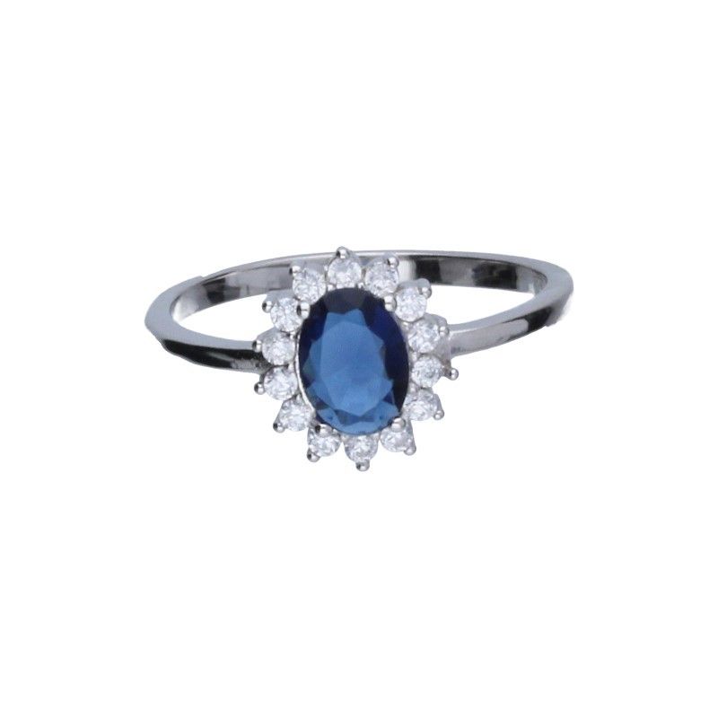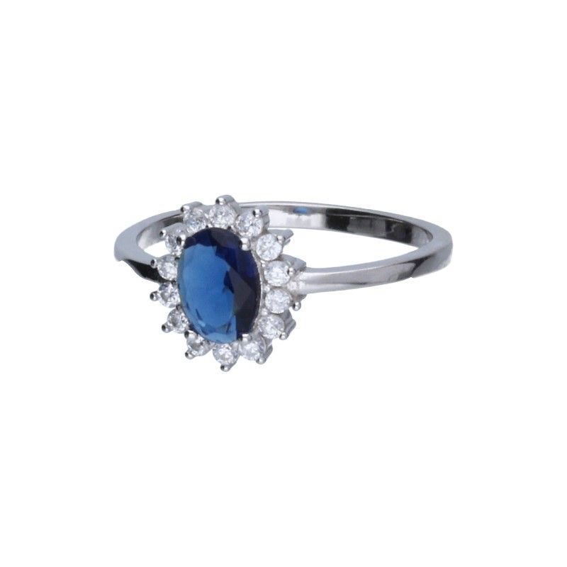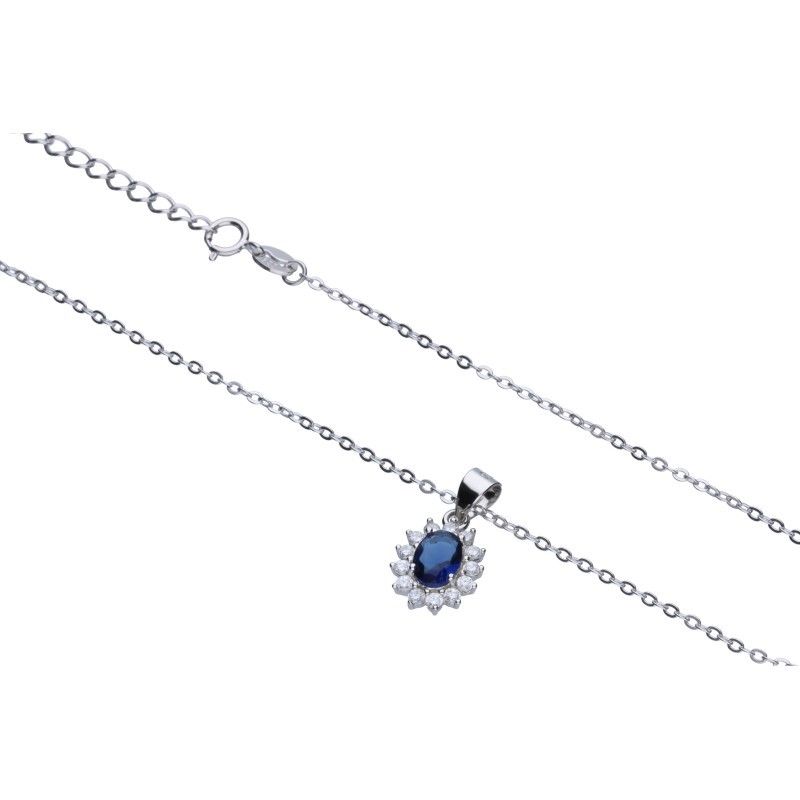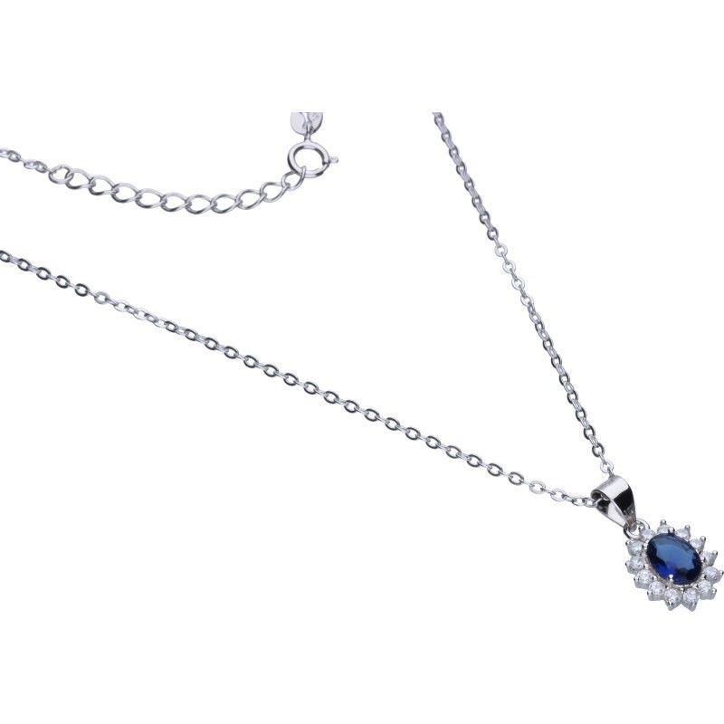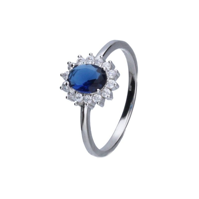 A set of a marquis, consisting of a necklace, stick earrings plus a ring in size 14, 925 rhodium silver, sapphire and white rhinestones, necklace length 42cm+3cm extension, oval of the ring with dimensions of 9mm x 10mm.