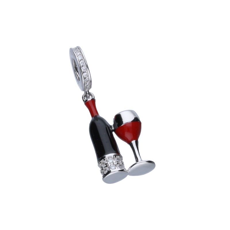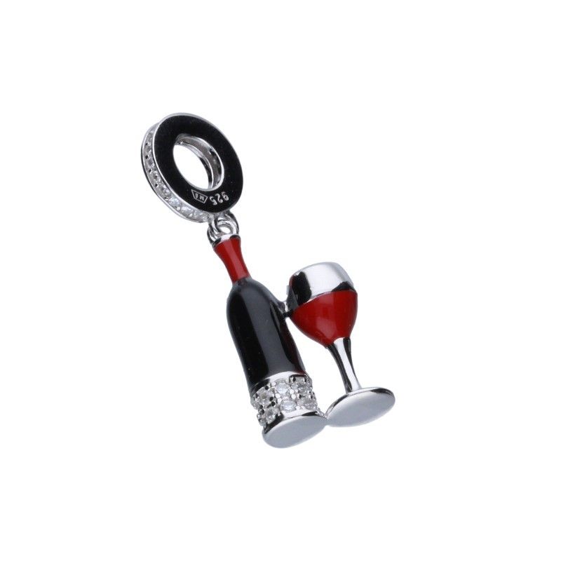 Bead hanging pendant matching modular bracelets with a diameter of max 3mm, 925 rhodium, red and black enamel, white rhinestones, glass, wine, dimensions of the pendant 11mm x 19mm.