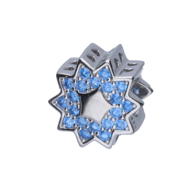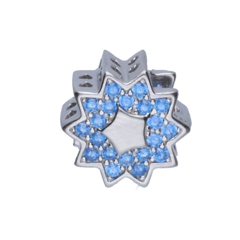 Bead openwork pendant matching modular bracelets with a diameter of max 3mm, silver 925 Rida, blue rhinestones, star, star, dimensions of a bead 12mm x 13mm.