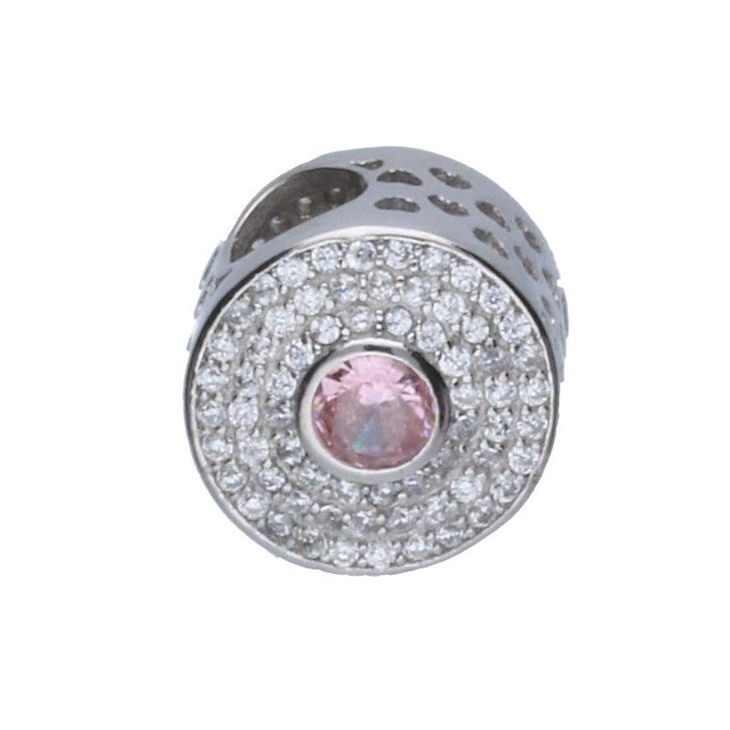 Bead pendant matching modular bracelets with a diameter of max 3mm, silver 925 rhodium, white and pink rhinestones, 12mm bead diameter.