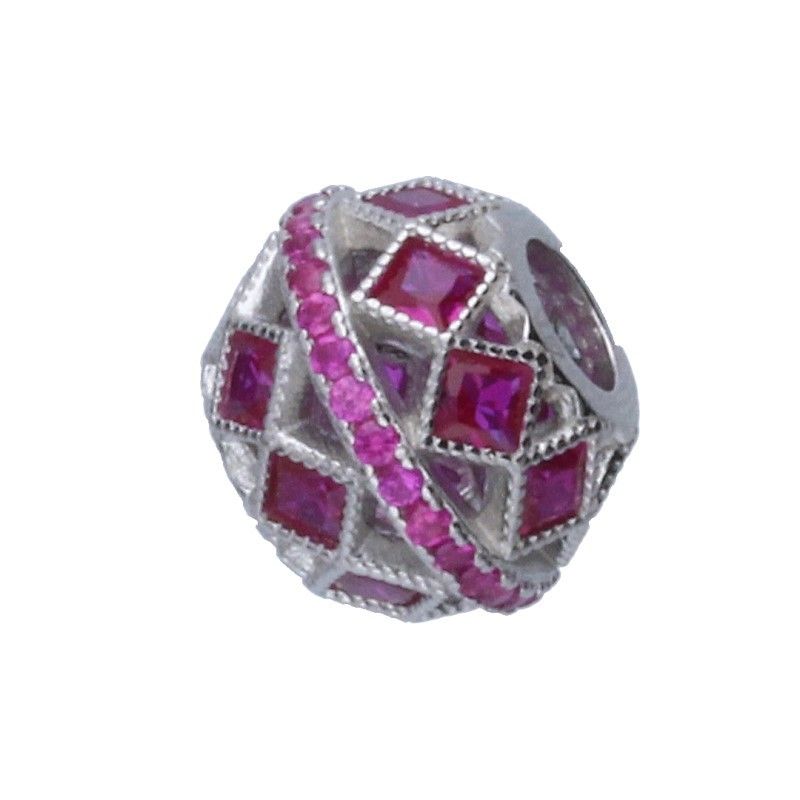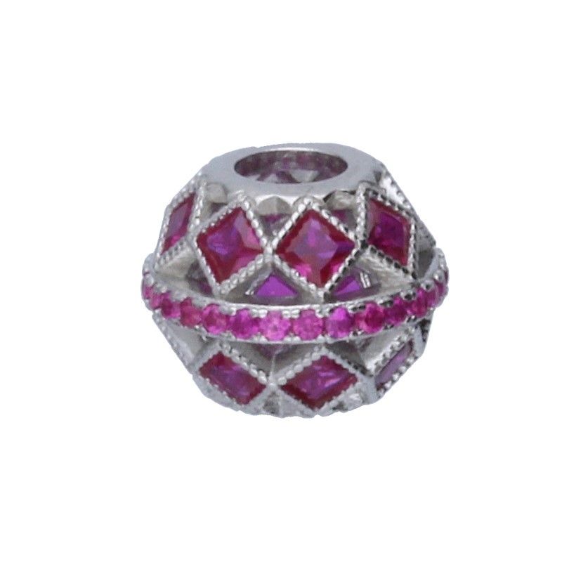 Bead openwork pendant matching modular bracelets with a diameter of max 3mm, 925 rhodium sample silver, fuchsia rhinestones, dimensions of a bead 10mm x 13mm.