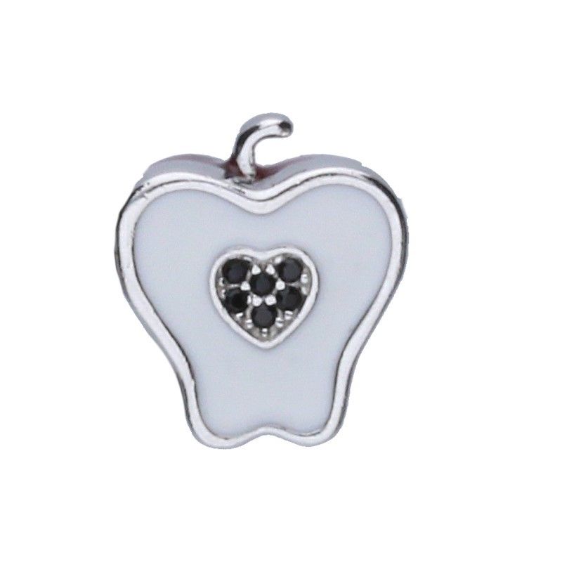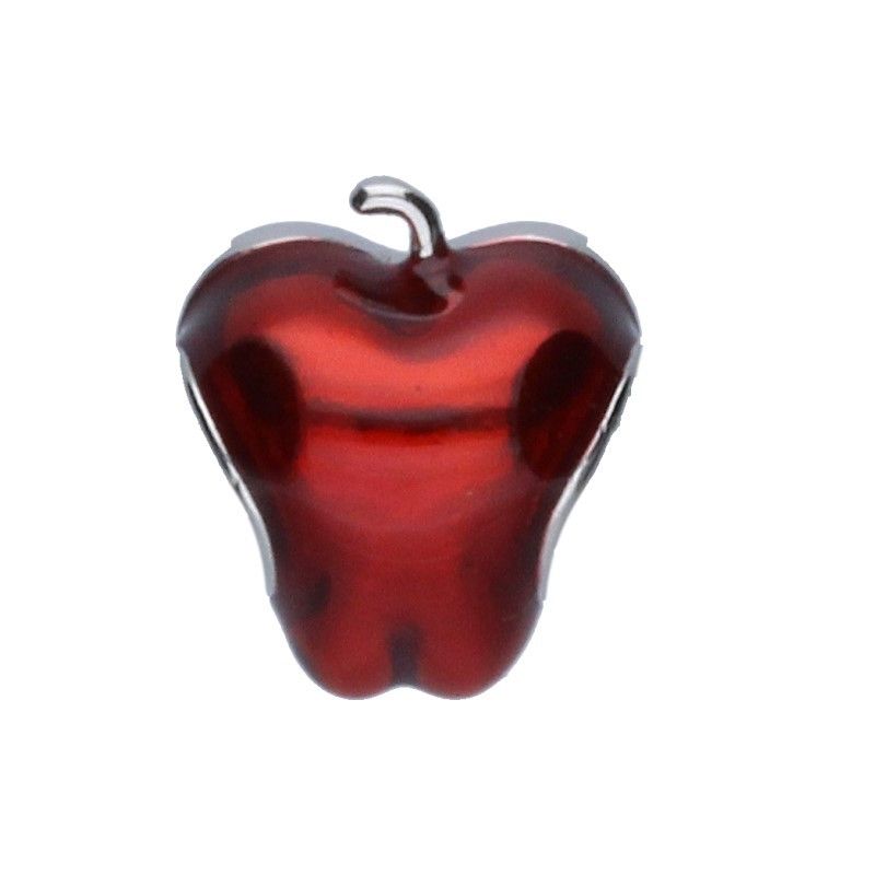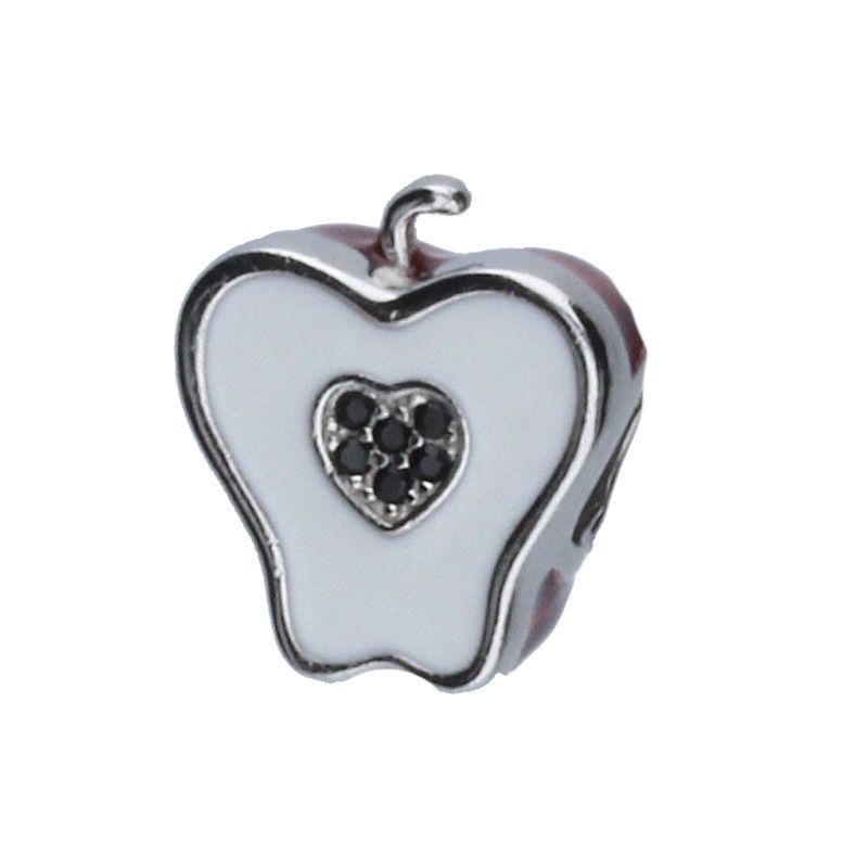 Bead pendant matching modular bracelet with a diameter of max 3mm, 925 Rozdany, white and red enamel, black rhinestones, red apple, bead dimensions 11mm x 13mm.