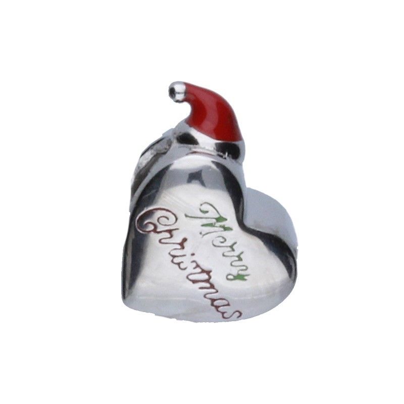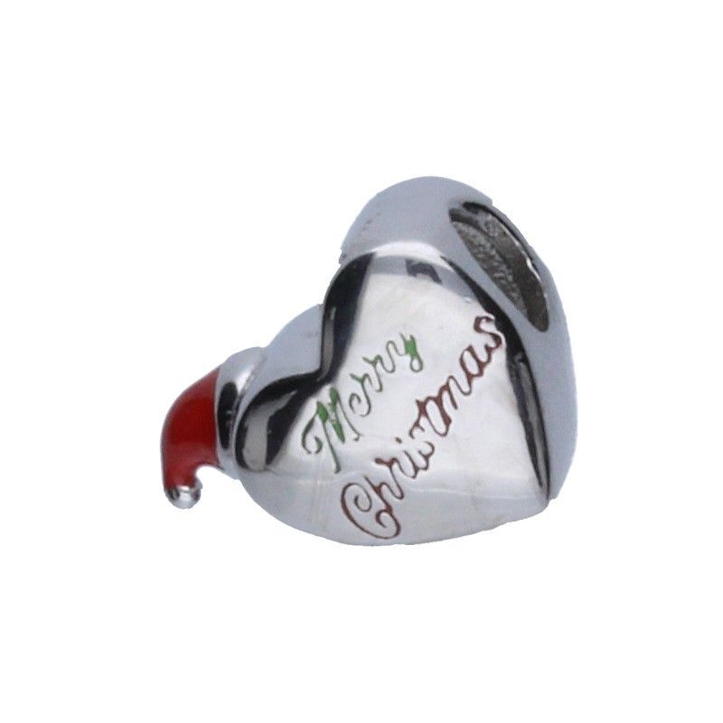 Bead Christmas pendant matching a modular bracelet with a diameter of max 3mm, silver 925 Rida, red and green enamel, heart in Santa's hat with the inscription Merry Christmas, dimensions of a bead 13mm x 13mm.