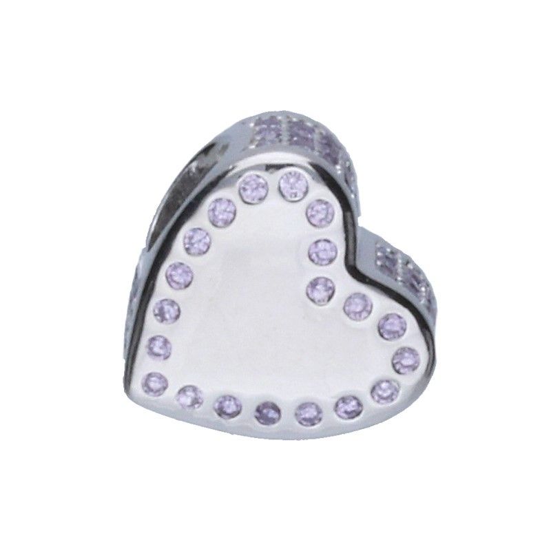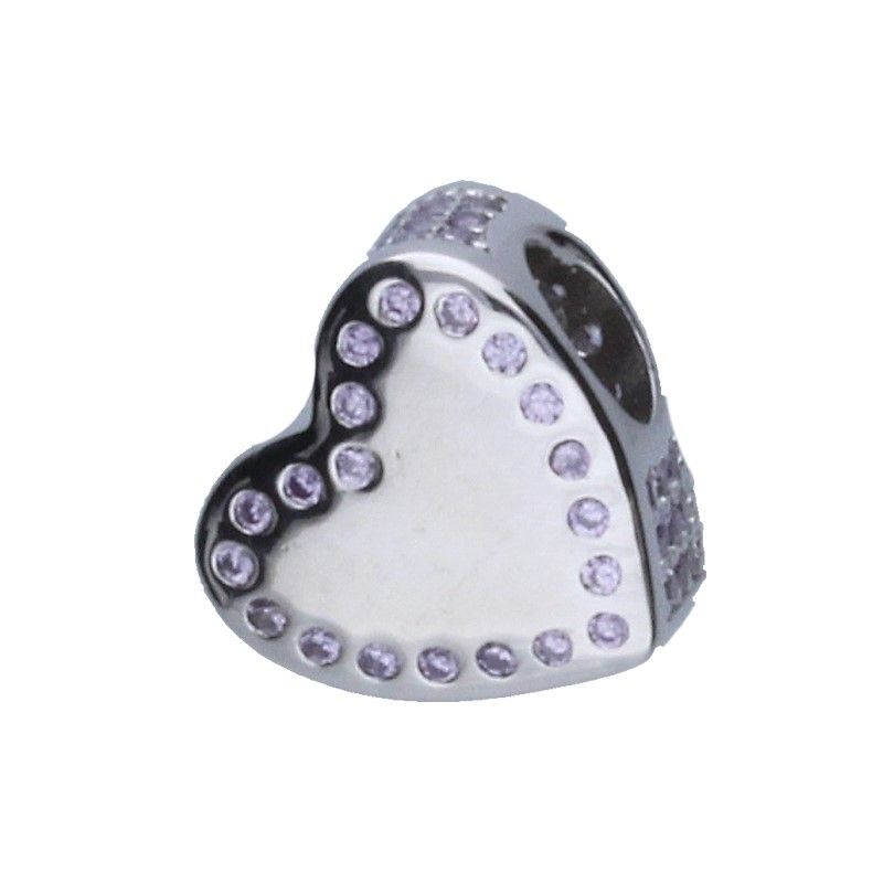 Bead openwork pendant matching modular bracelets with a diameter of max 3mm, 925 rhodium, pink rhinestones, heart, heart, pendant dimensions 11mm x 11mm.