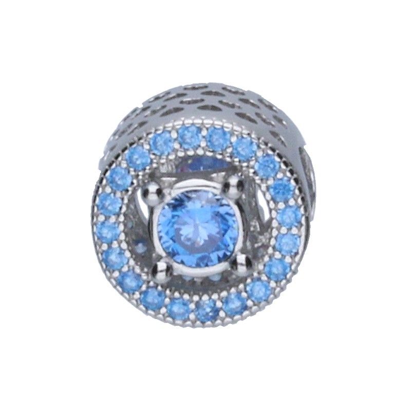 Bead openwork pendant matching modular bracelets with a diameter of max 3mm, 925 rhodium silver, blue rhinestones, 10mm bead diameter.