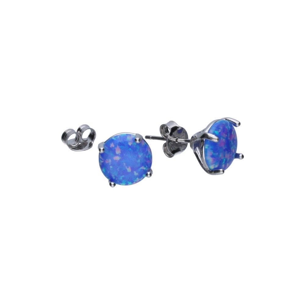 Pick -up earrings, 925 rhodium, blue tap silver with pink shimmering particles, rounded in silver paws, 9mm diameter.