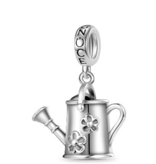 BEAD-TYPE HANGING PENDANT, FITS MODULAR BRACELETS WITH A MAX DIAMETER OF 3mm, 925 SILVER, RHODIUM PLATED, FLOWERS, FLOWERS, WATERING CAN SIZE 13mm X 16mm.