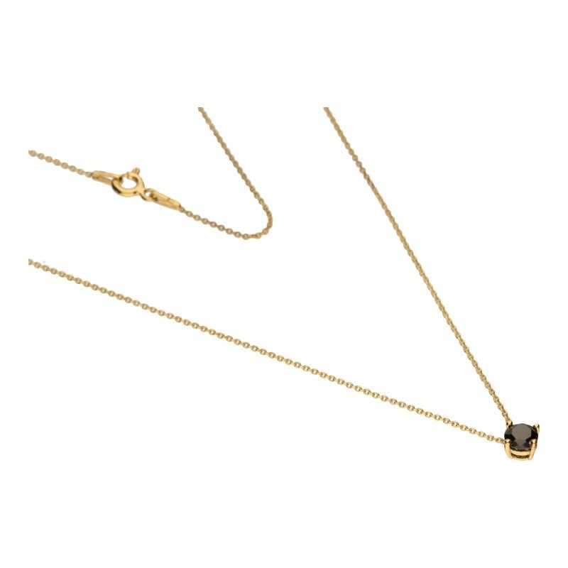 NECKLACE WITH ROUND ZIRCONIA, BLACK, DIAMETER 5MM, 925 SILVER, GOLD PLATED WITH 24 CARAT GOLD, LENGTH 44CM.