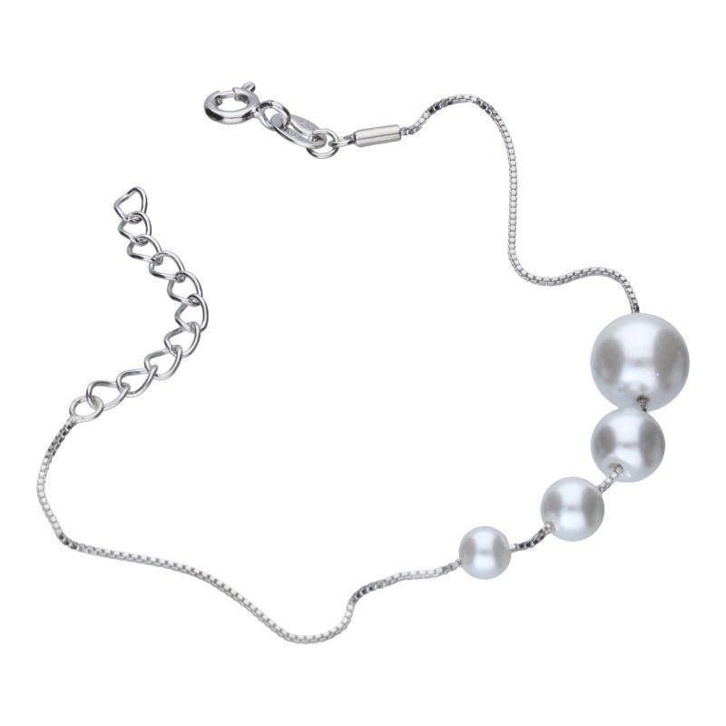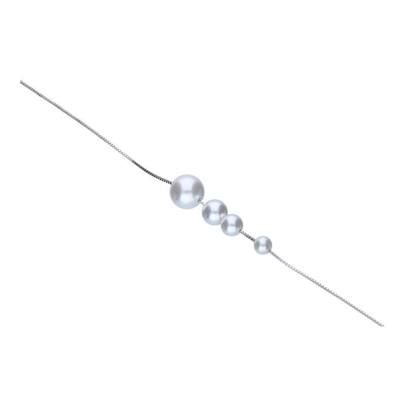 BRACELET ON A VENICE CUB WEAVE CHAIN, 925 SILVER, RHODIUM PLATED, CULTURED FRESHWATER PEARLS, DIAMETER FROM 4mm TO 8mm, LENGTH 16cm + 3cm EXTENSION.